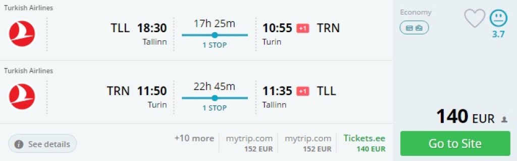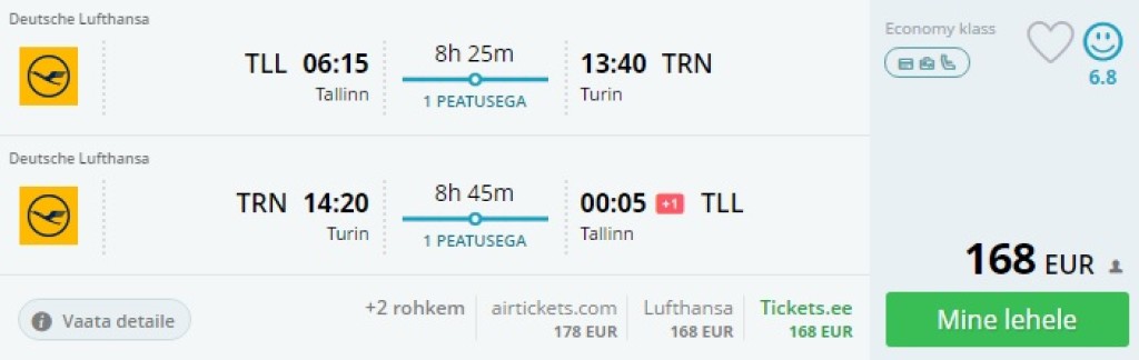 Lufthansa ja Turkish Airlines pakuvad lennupileteid Tallinnast Alpide jalamil asuvasse Põhja-Itaalia tähtsasse äri- ja kultuurikeskusesse Torinosse hinnaga alates 140€. Sellise hinnaga lennud on saadaval alates aprillist. Lennud on ühe vahemaandumisega kas Frankfurdis või Istanbulis. Turkish Airlinesi puhul tuleb arvestada ööbimisega mõlemal suunal, kuid pikkade vahemaandumiste puhul pakub Turkish Airlines tasuta öömaja.