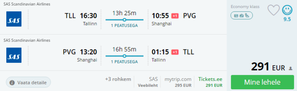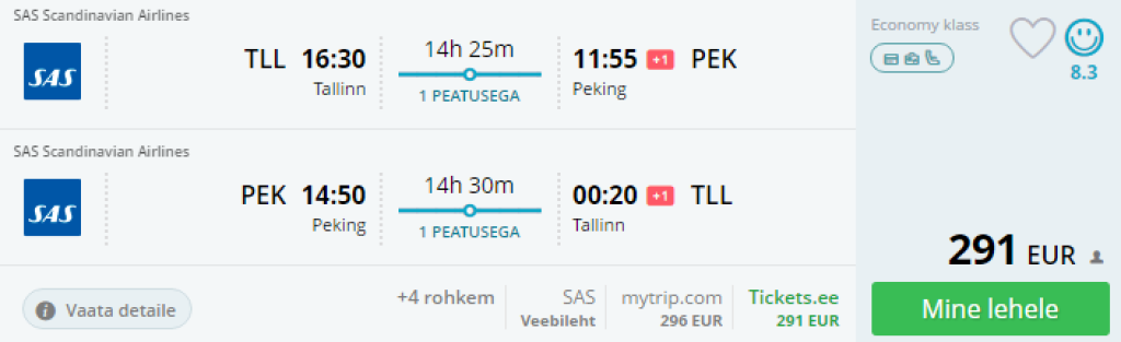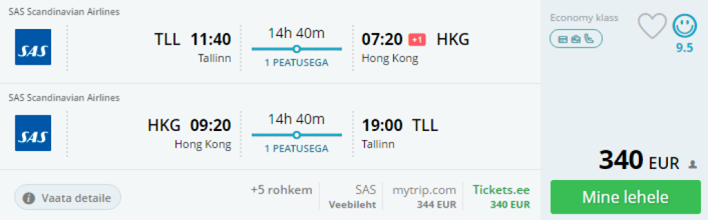 Lisaks SAS'i USA diilidele on hetkel on saada väga hea hinnaga lennupiletid Tallinnast Aasiasse, Hongkongi, Shanghaisse ja Pekingisse. Soodsaid lennukuupäevi leiad märtsi lõpust kuni mai lõpuni (v.a aprilli keskpaik). Lennud ühe mugava ümberistumisega mõlemal suunal. Soodsad (al 291€) lennupileteid leiad aadressil momondo.ee või kasuta otselinke allpool.