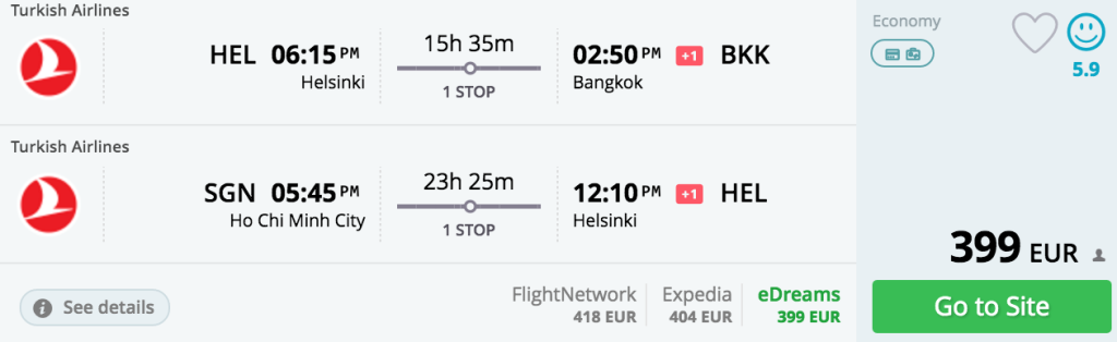 Helsingi-Bangkok//Ho Chi Minh City-Helsingi al. 399€