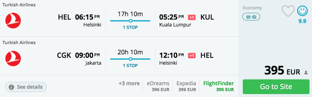 Helsingi-Kuala Lumpur//Jakarta-Helsingi al. 395€