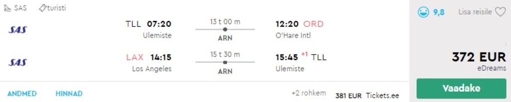 Vaata ka suurepärase hinnaga edasi-tagasi lennupileteid Tallinnast USA-sse: