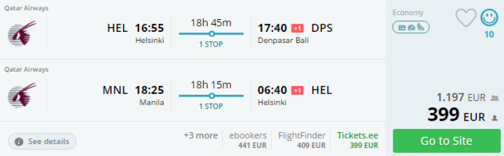 Helsingi - Bali// Manila - Helsingi 399€
