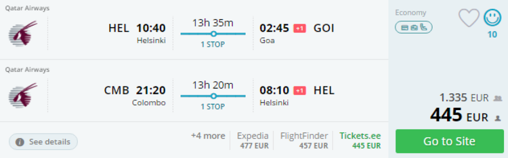Helsingi - Goa//Colombo - Helsingi 445€