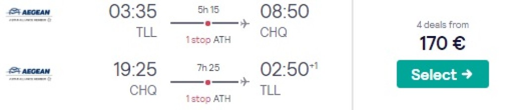 Tallinn-Kreeta (Hania)-Tallinn alates 170€