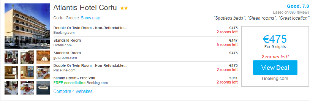 Kui otsid öömaja Kreeka saartel, siis tasub kindlasti hotellihindade võrdlemiseks kasutada HotelsCombined.ee hotellide otsingumootorit.