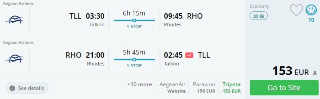 Tallinn- Rhodos- Tallinn al. 153€