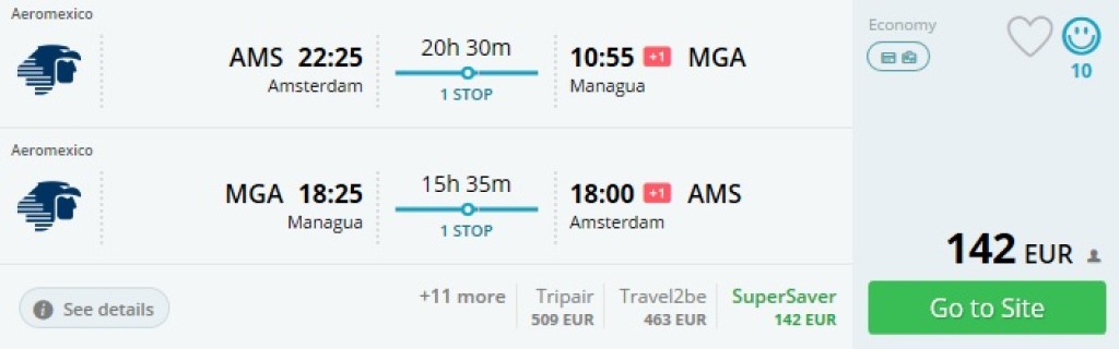 Amsterdam - Managua (Nikaraagua) - Amsterdam 142€
