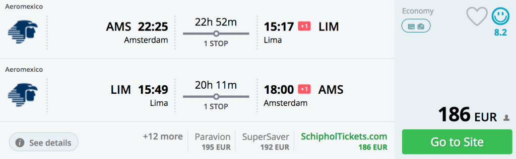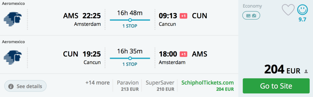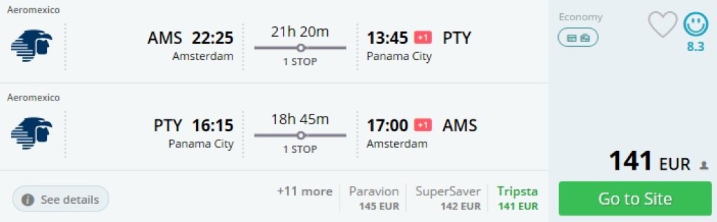 Mehhiko lennufirmaga Aeromexico saab praegu Amsterdamist supersoodsalt lennata paljudesse sihtpunktidesse Kesk- ja Lõuna-Ameerikas. Valikus on näiteks Panama City, Havanna, Gutemala City, Cancun, San Jose, Lima, San Salvador jm. Pileteid on saada lendudele August 2017 – veebruar 2018 ja hinnad algavad 136€. Saadaval on ka piletid jõulude ajaks. NB! Kuna tegemist on veahindadega, tasub reageerida võimalikult kiiresti.