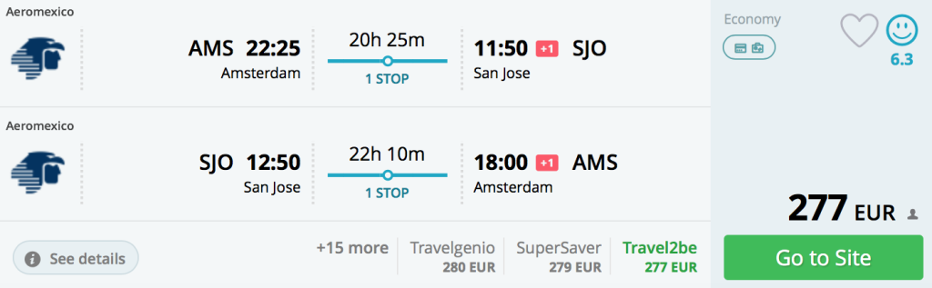 Amsterdam-San Jose (Costa Rica) - Amsterdam 277€