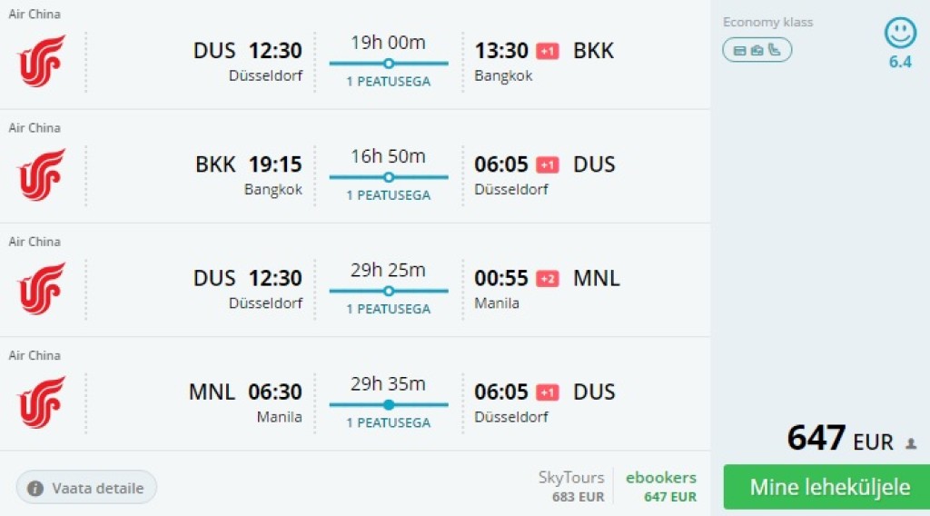 Düsseldorf – Bangkok – Düsseldorf 13.01-27.01 // Düsseldorf – Manila – Düsseldorf 19.03-02.04 647€ (Link)