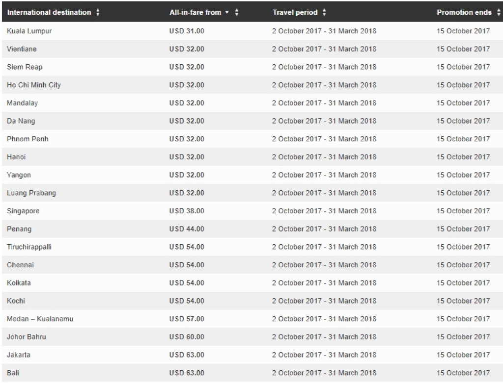 Aasta lõpuni on veel mõnevõrra aega, kuid AirAsial on juba käimas aastalõpu sooduspakkumine. Saadaval on kõik AirAsia sihtkohad Kagu-Aasias, Indias, Hiinas, Filipiinidel, Indoneesias ja Austraalias, lisaks Maldiivid, Honolulu, Nepal, Lõuna-Korea ja Uus-Meremaa. Ühe suuna piletite hinnad algavad 8,50 eurost. Lennuperiood on oktoobrist 2017 kuni 31. märtsini 2018. Müük kestab 15. oktoobrini.
