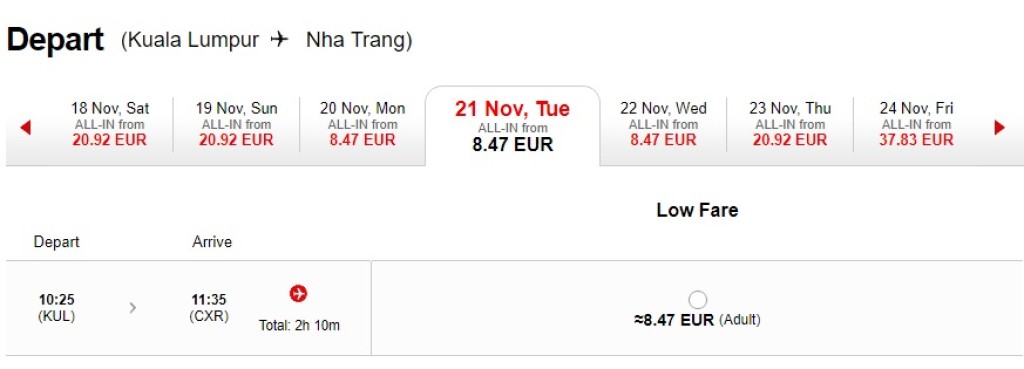 LennupiletidInfo kõikide sihtkohtade ja hindade kohta leiab AirAsia kodulehel.
