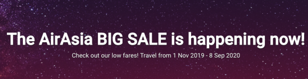 Tänasest algas Aasia suurimal odavlennufirmal AirAsia nende suurim kampaania BIG SALE! Kampaaniahinnaga lennupileteid saab soetada kuni 19.06.2019 ning nagu ikka on iga lennu kohta soodsate piletite arv piiratud. Kampaania kehtib lendamiseks vahemikus 01.11.2019-08.09.2020. Kahjuks on Airasia koduleht oma disaini muutes kaotanud ära nimekirjad hindadest ja sihtkohtadest, aga väga hea hinnaga lennupileteid leiab näiteks Kuala Lumpurist ka Austraalia suunal ning ka Taiwani, Jaapani ja Havaii suunal.