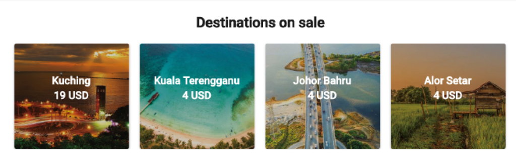 Näide:Lennupiletid Kuala Lumpurist alates 4USD