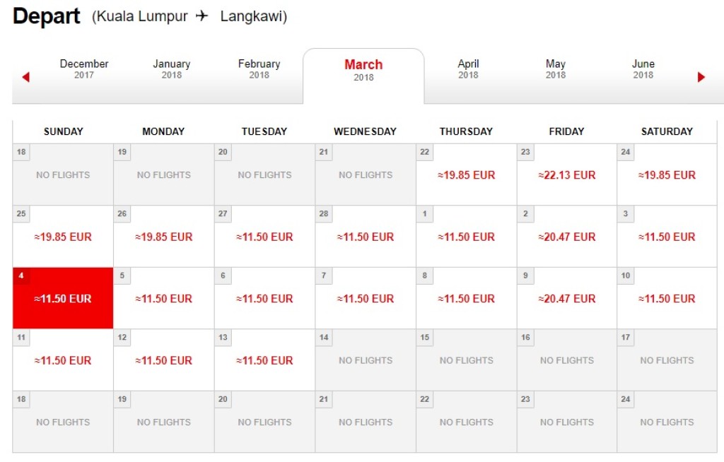 Hinnanäide Kuala Lumpur – Langkawi