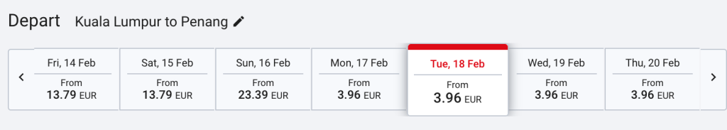 Näide:Lennupiletid Kuala Lumpurist Penangi alates 4€