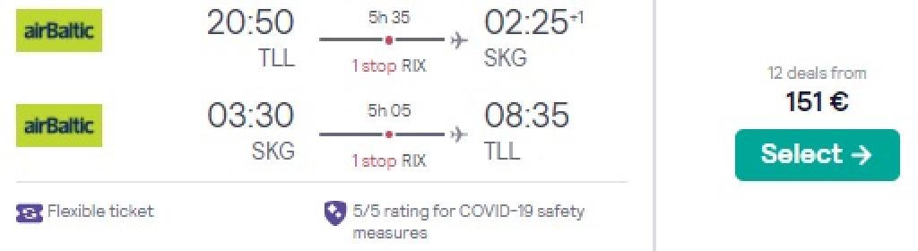 Läti odavlennufirma airBaltic pakub hetkel väga hea hinnaga lennupileteid suvepikenduseks Chalkidiki poolsaarele Kreekas. Edasi-tagasi lennupiletid Tallinnast Thessalonikisse on saadaval alates 151€ eest. Parima hinnaga lennupiletid leiad üles läbi Skyscanneri. Meie soovitus on minna airbaltic.com ja soetada lennupiletid otse lennufirmalt vaid mõnevõrra kallimalt (hinnad Tallinnast alates 165€).