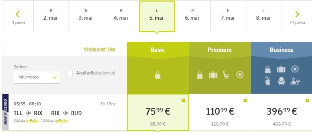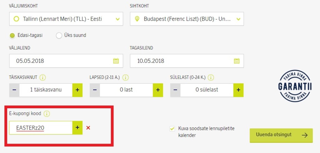 Kood sisesta enne otsingu teostamist airBalticu kodulehel: