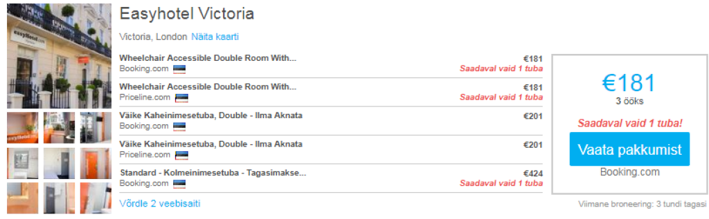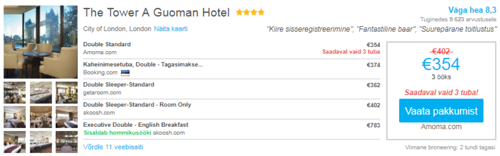 Otsisime välja hotellipakkumised veetmaks Londonis nädalavahetus ehk siis kolm ööd. Meie poolt valitud kuupäevad on 09.03-12.03, aga sama hinnaga või isegi soodsamalt leiab samasid hotelle ka sulle sobivatel kuupäevadel.