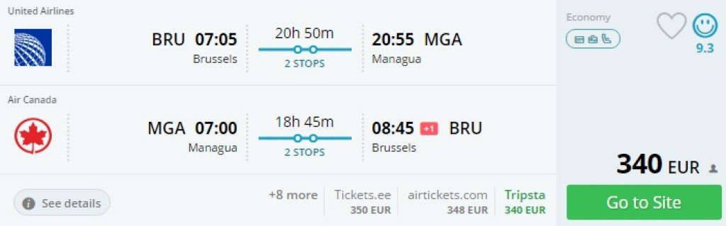 United Airlines ja Air Canada (kohati ka Delta) pakuvad 2017. aasta alguses hea hinnaga pileteid Nikaraagua pealinna Managuasse. Edasi-tagasi lennupiletid leiab alates 340€.Kahe ümberistumisega lennud toimuvad sõltuvalt kuupäevast väga erinevaid marsruute pidi.