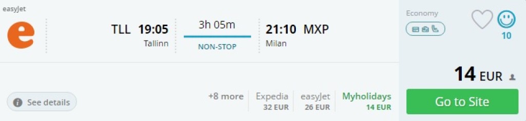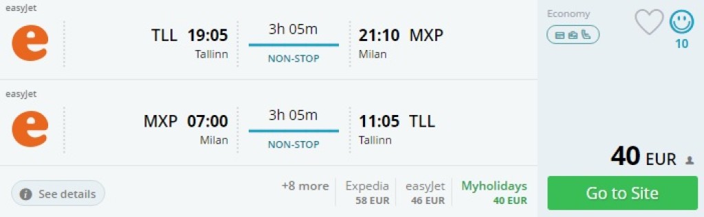 Odavlennufirma easyJet on müüki pannud talvereisid kuni 4. veebruarini 2018. a. Lennud Tallinnast Milanosse leiab kohati hämmastava hinnaga – edasi-tagasi lennupileti hind algab 40 eurost. Ja ühe suuna piletid on saadaval vaid 14 euroga. Aga selliseid hindu jagub tõesti vaid kiirematele!