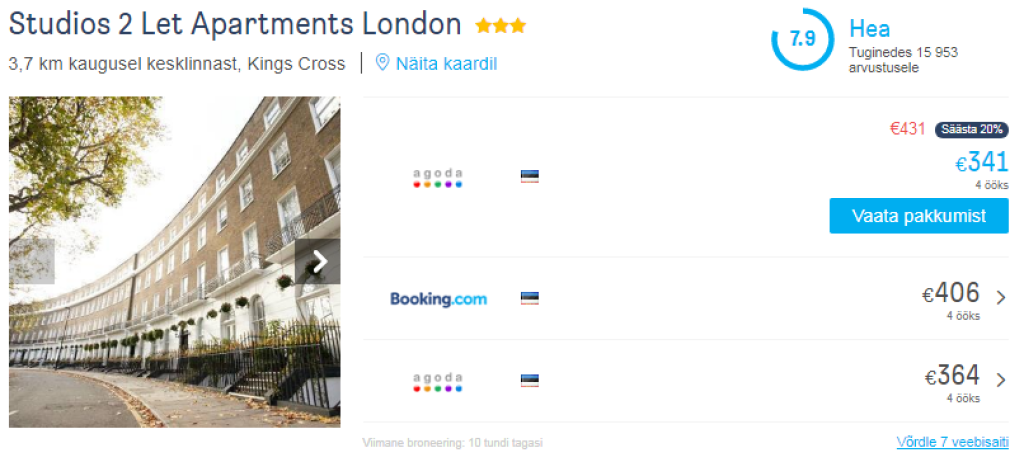 Otsisime välja hotellipakkumised veetmaks 4 ööd Londonis. Meie poolt valitud kuupäevad on 25.05-29.05 (lennupiletid allpool), aga sama hinnaga või isegi soodsamalt leiab sama hotelli ka sulle sobivatel kuupäevadel.