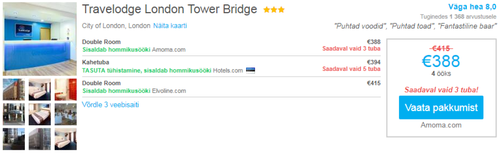 ](https://www.hotelscombined.ee/Hotel/Travelodge_London_Tower_Bridge.htm)Selle ja teised head pakkumised leidsime üles hotellihindade võrdlusportaalist Hotelscombined.ee