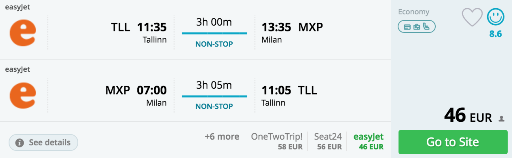 Lennud Tallinna ja Milaano vahel toimuvad neljapäeviti ja pühapäeviti! Lennupiletite otsimiseks kasutada Momondo.com