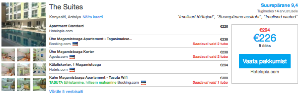 Selle ja palju teisi väga hea hinnaga hotellipakkumisi leiad üles läbi hotellihindade võrdlusportaali HotelsCombined.ee