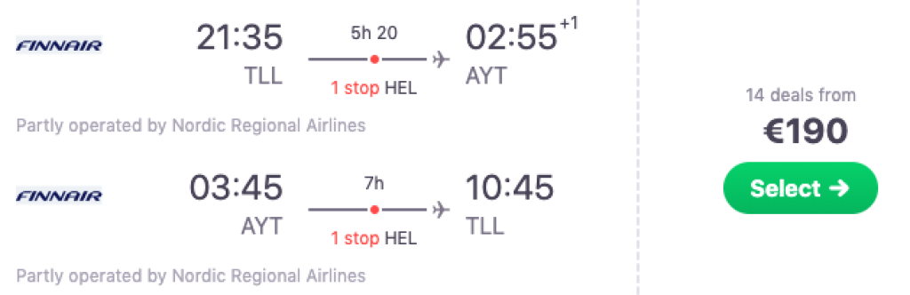 Finnair pakub hetkel hea hinnaga lennupileteid kevadeks ja ka 2020 aasta suveks Tallinnast Türgi ühte kuulsaimasse kuurortlinna Antalyasse. Edasi-tagasi lennupiletid on saadaval alates 190€ eest ning hea hinnaga lennupiletite saadavust leiab aprillist kuni augustini. Lennud on mõlemal suunal ühe kiire ümberistumisega Helsingis. Parima hinnaga lennupiletid leiad üles läbi Skyscanneri