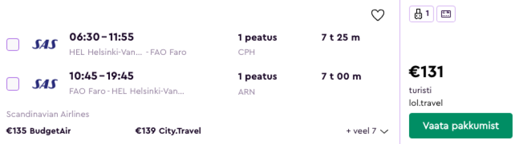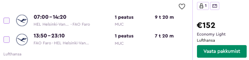 Erinevad Star Alliance lennufirmad pakuvad hetkel väga hea hinnaga lennupileteid Lõuna-Portugali. Soodsaimad edasi-tagasi lennupiletid (SASiga) on saadaval vaid 131€ eest ning Lufthansa pakub lennupileteid alates 152€ eest. Kõik meie poolt välja otsitud lennukuupäevad on mõlemal suunal ühe kiire ümberistumisega.