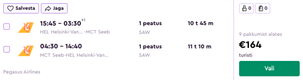 Pegasus pakub hetkel väga hea hinnaga lennupileteid Omaani. Edasi-tagasi lennupiletid Helsingist pealinna Masqaţisse on saadaval alates 164€ eest.