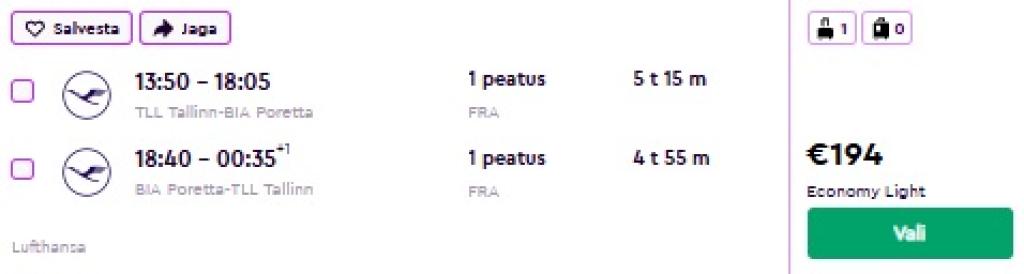 Lufthansa pakub hetkel suurepärase hinnaga lennupileteid Korsikale. Edasi-tagasi lennupiletid Tallinnast Bastiasse on saadaval alates 194€ eest.