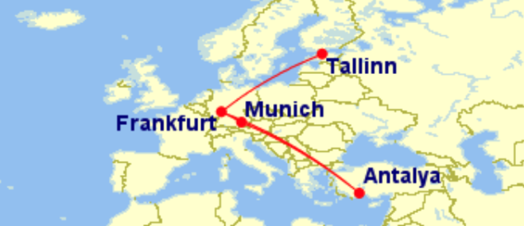 Lufthansa pakub hetkel hea hinnaga lennupileteid Tallinnast Türki. Edasi-tagasi lennupiletid Tallinnast Antalyasse on saadaval alates 170€ eest ning saadavust leiab kevadeks. Miinuseks on mõnel suunal pikemapoolsed (kuni 6h) ümberistumised Frankfurdis. Soodsaimad lennupiletid leiab üles läbi Skyscanneri aga kui soovid osta lennupiletid otse lennufirma kodulehelt siis Lufthansa kodulehel on samade lennupiletite hinnaks alates 177€. Vaata pakkumist otse Lufthansa.com