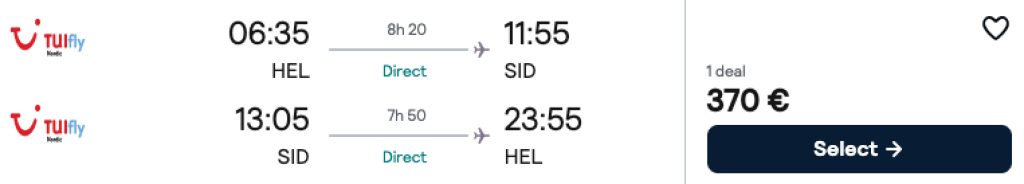Soome reisikorraldaja TUI pakub hetkel väga hea hinnaga lennupileteid Helsingist Roheneemesaartele. Edasi-tagasi lennupiletid otselendudele Helsingist Sali saarele on saadaval alates 370€ ning saadavust leiab veetmaks nädalane puhkus Roheneemesaartel veebruari alguses. Otselend Helsingist Roheneemesaartele kestab orienteeruvalt 8h.