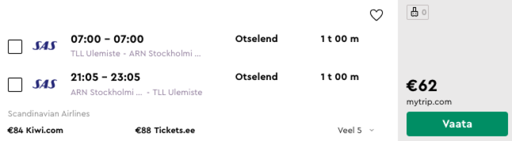 Näiteks leiab ajaliselt klappivad lennupiletid kuupäevadel 01.02-15.02 Tallinnast Stockholmi 62€ eest. Sobivad lennupiletid leiad SIIT