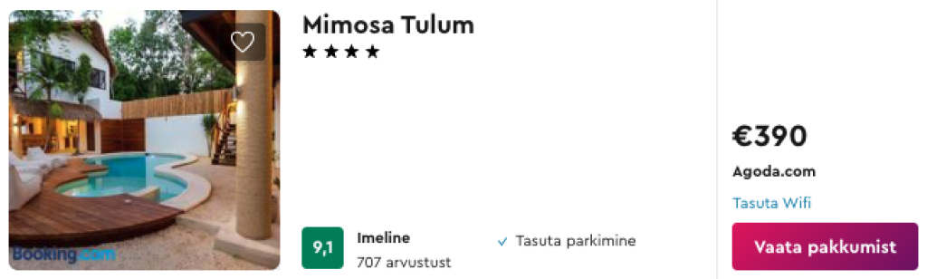 Toome välja näite soodsast hotellipakkumisest nädalaks ajaks Tulumis:
