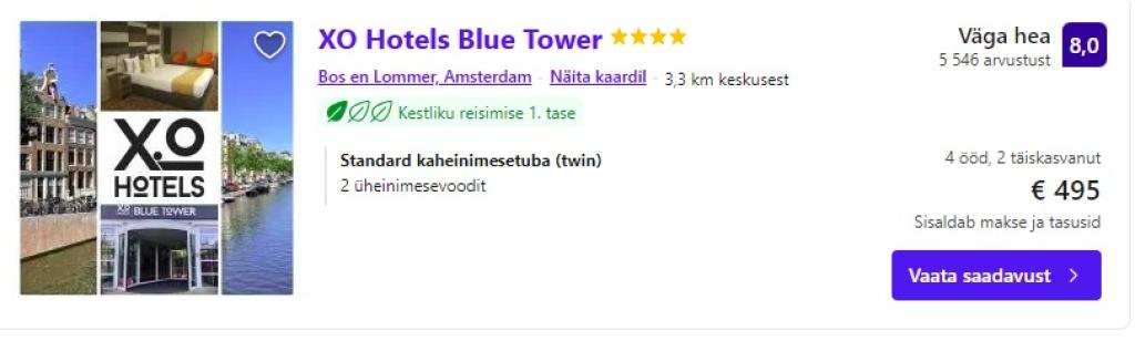 Kui otsid soodsa hinnaga öömaja Amsterdamis, siis soovitame parima ülevaate ja hinna saamiseks kasutada hotellihindade võrdlusportaali Booking.com