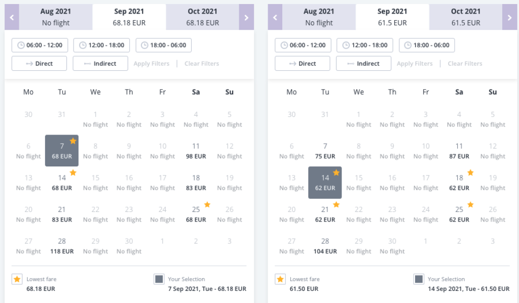 Parima hinnaga lennupiletid leiad hõlpsalt üles Pegasuse lennufirma kodulehel olevast kalendrivaatest