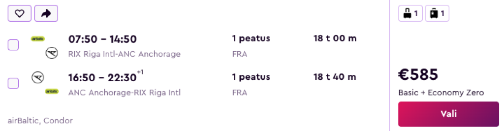 Condor pakub hetkel väga hea hinnaga lennupileteid Alaskale. Edasi-tagasi lennupiletid Riiast Anchorage'i on saadaval alates 585€ eest.