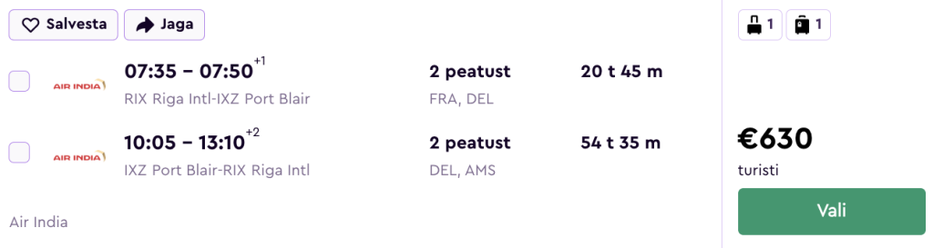 Air India pakub hetkel väga hea hinnaga lennupileteid talveks Andamani saartele. Soodsaimad edasi-tagasi lennupiletid Riiast Port Blairi on saadaval alates 630€ eest. Miinuseks on tihtipeale tulenevalt lennuplaanist pikemad ümberistumised kas siis Delhis või Amsterdamis, mis annab ka võimaluse põgusaks tutvumiseks nende linnadega.