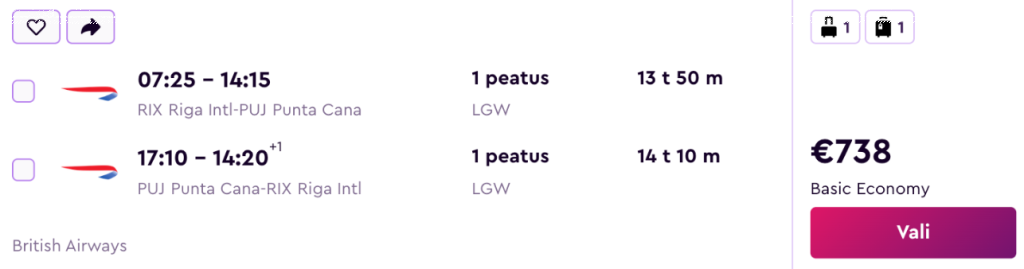 British Airways koostöös airBalticuga pakuvad hetkel suurepärase hinnaga lennupileteid Dominikaani Vabariiki. Soodsaimad edasi-tagasi lennupiletid Riiast Punta Canasse on saadaval alates 738€ eest. Kõikidel meie poolt välja otsitud näidiskuupäevadel on mõlemal suunal üks ümberistumine Londonis.