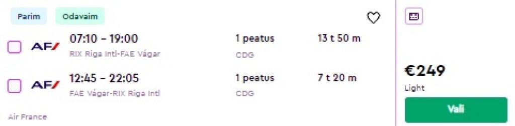 Air France pakub hetkel soodsa hinnaga lennupileteid kevadeks ja suveks Fääri saartele. Ühe ümberistumisega edasi-tagasi lennupiletid Riiast on saadaval alates 249€ eest ning soodsa hinnaga lennupileteid leiab maist augustini.
