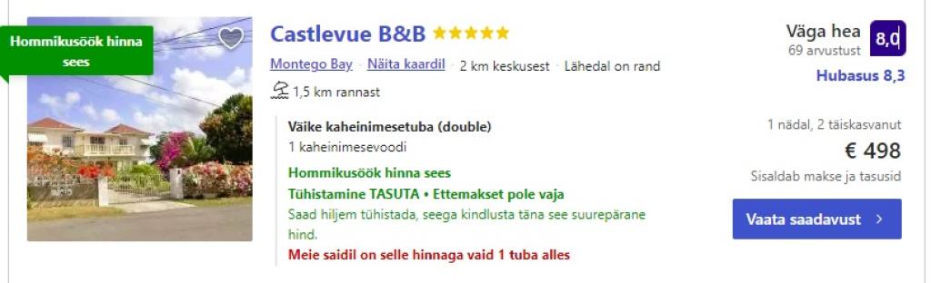 Kui otsid soodsa hinnaga majutust Montego Bays või mujal Jamaikal, siis soovitame parima ülevaate ja hinna saamiseks kasutada hotellihindade võrdlusportaali Booking.com
