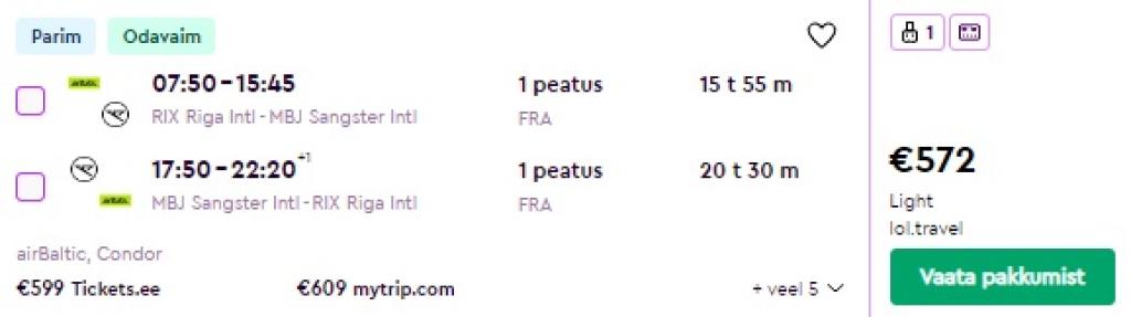 Condor koostöös airBalticuga pakuvad hetkel väga hea hinnaga lennupileteid Jamaikale. Ühe ümberistumisega lennupiletid Riiast Montego Baysse on saadaval al 572€ eest ning hea hinnaga lennupileteid leiab aprillis. Lennupiletite hinnas sisaldub ka äraantav pagas! Lennupiletite ostmiseks kliki allolevatel lennukuupäevadel või kontrolli endale sobivaid kuupäevi läbi Momondo.ee
