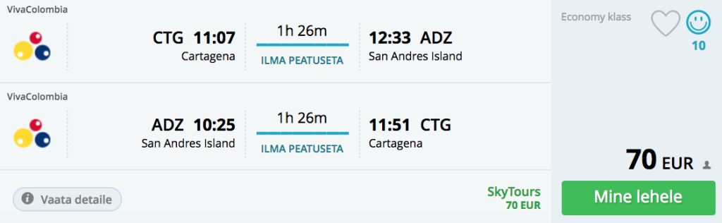 ####Idee: Külasta ka Kariibi meres asuvat Kolumbiale kuuluvat San Andrese saartLennupiletid Cartagenast San Andrese saarele leiad alates 70€ eest läbi Momondo