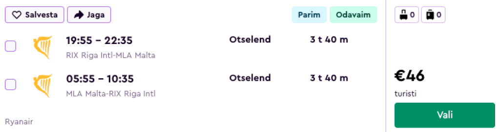 Ryanair pakub hetkel väga hea hinnaga lennupileteid Maltale. Edasi-tagasi lennupiletid otselendudele Riiast Maltale on saadaval alates 46€ eest.