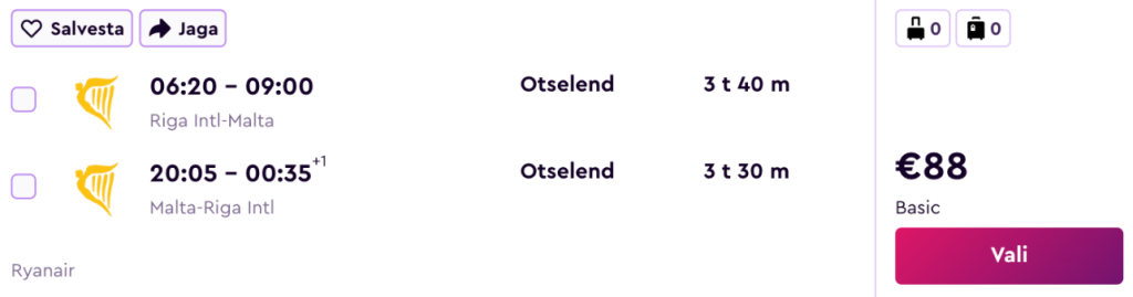 Ryanair pakub hetkel väga hea hinnaga lennupileteid Maltale. Edasi-tagasi lennupiletid otselendudele Riiast Maltale on saadaval alates 88€ eest.