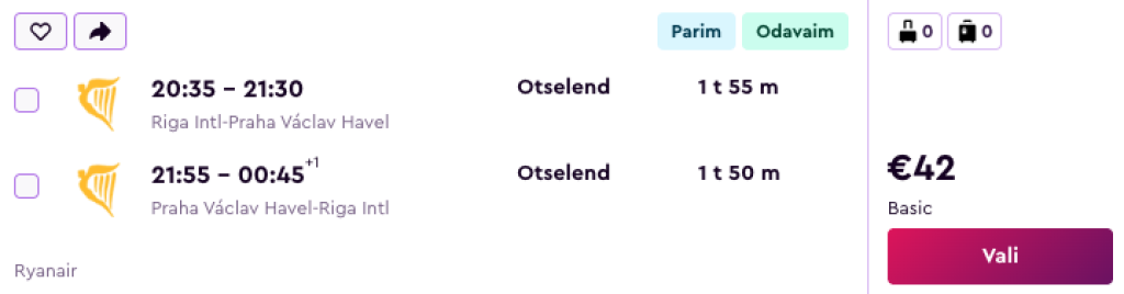 Ryanair pakub hetkel väga hea hinnaga lennupileteid linnatripiks Prahasse. Edasi-tagasi lennupiletid otselendudele Riiast Prahasse on saadaval alates 42€ eest.