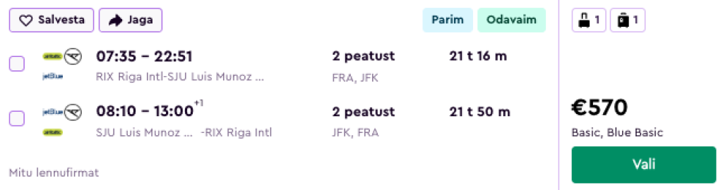 Condor koostöös airBalticu ja jetBluega pakuvad hetkel suurepärase hinnaga lennupileteid Kariibidele, Puerto Ricosse. Edasi-tagasi lennupiletid Riiast pealinna San Juani on saadaval alates 570€ eest. Miinuseks on osadel kuupäevadel pikemad ümberistumised päevasel ajal kas siis New Yorgis või Frankfurdis.